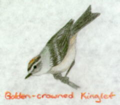 ![]() Golden-crowned Kinglet in coloured-pencil. |