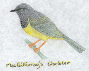 ![]() MacGillivray's Warbler in coloured-pencil. |